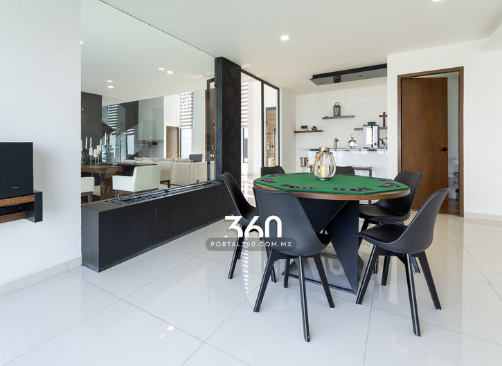 Casa en venta en Lomas de Angelópolis III, ubicada en lote en esquina. Cuenta con 3 recámaras con baño y walk-in closet, vestíbulo y sala con doble altura, cocina con isla, family room con barra, jardín, chimenea de etanol, y cochera techada. Seguridad privada, parque infantil y salón social. 424.1 m² totales.
