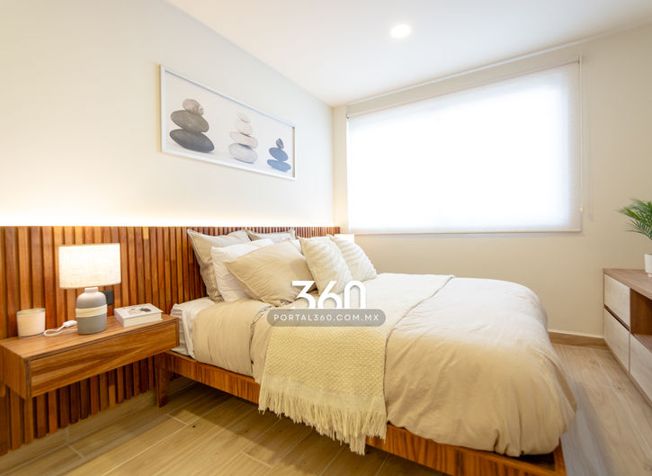 Descubre este exclusivo desarrollo en preventa en Cholula, un conjunto de 3 niveles con solo 14 departamentos de estilo toscano. Cada unidad ofrece 92 m² habitables, distribuidos en sala-comedor, cocina integral con barra, mueble para café y microondas, área de lavado para torre de lavadora y secadora, además de dos recámaras, la principal con baño completo y la secundaria con clóset. Los departamentos en planta baja cuentan con jardín privado. El conjunto incluye roof garden, business center, caseta de vigilancia, cerca eléctrica y cochera abierta para dos autos.